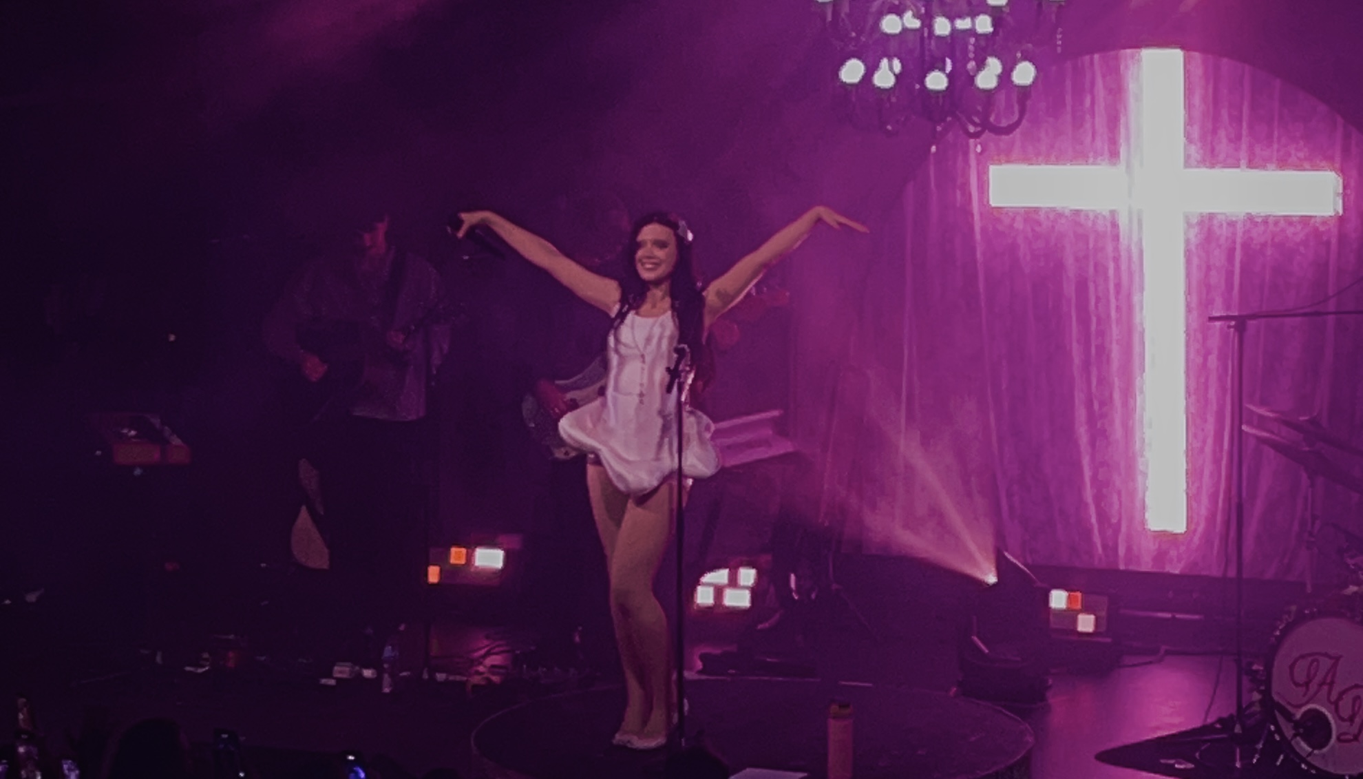 Her set design, with a single chandelier, light up cross and a gothic pink framing, bought the show together. Making the concert feel imitate, like you were in your rich best friend’s house having a slumber party. The circular platform in the centre of the stage also heightened the shows dynamic as you could not look away from her. All eyes were on Alessi Rose.